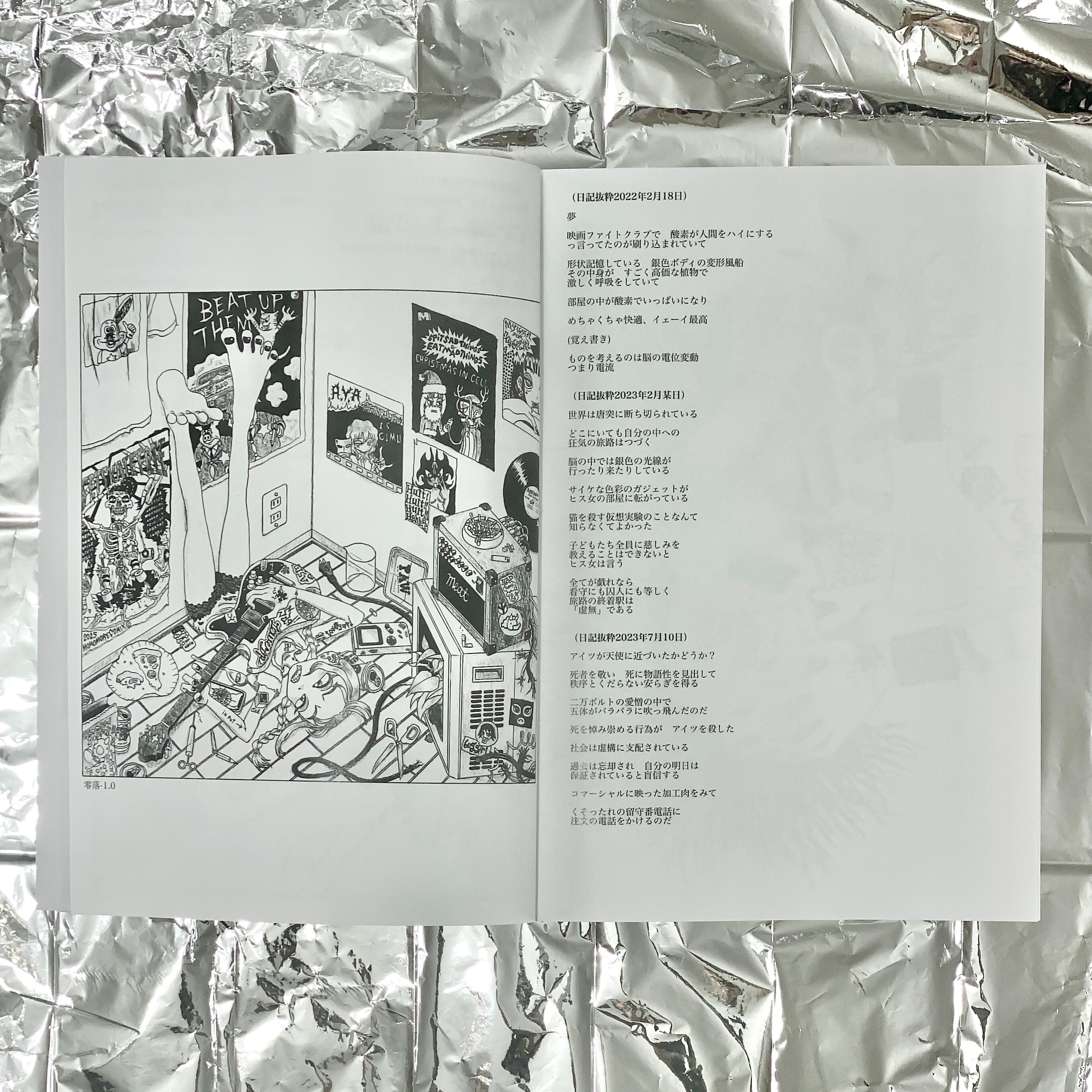 イラスト、日記抜粋、コミック「ドラッグ・ドランカーズ」(24p)収録。